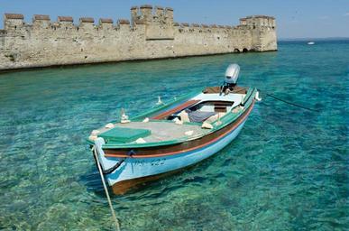 Keywords: castle wall middle ages boot water italy sirmione