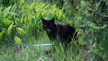 Keywords: cat animal pet black cat domestic cat animal world curious food bowl fressnapf