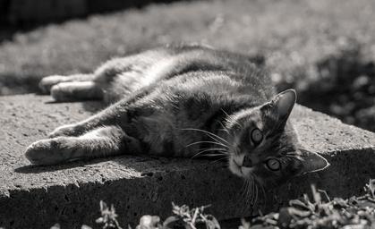 Keywords: cat animal pet vlack and black outdoors lying on the sun