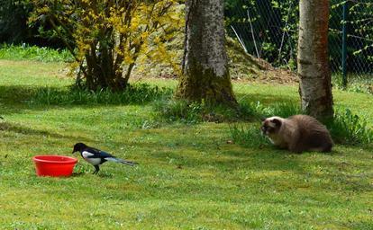 Keywords: cat bird elster british shorthair lurking