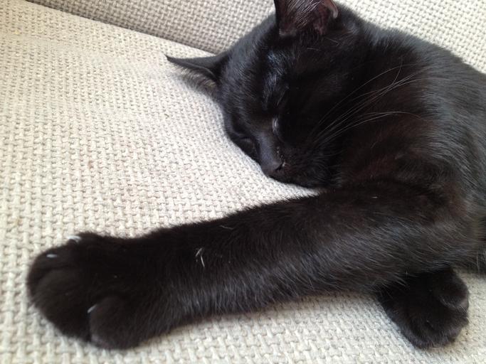 Keywords: cat black animal feline domestic kitten mammal happy sleeping