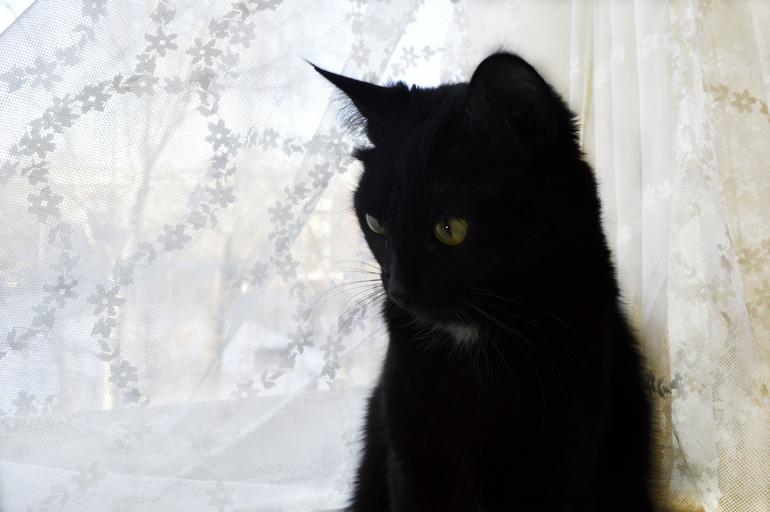 Keywords: cat black pet black and white