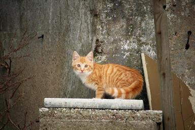 Keywords: cat cat baby stone stone wall wall old kitten red cat