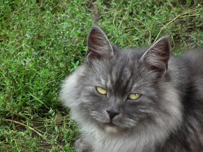 Keywords: cat cat's eye cute kitten animals grey fluffy cat cats cat eyes fur pet grass green