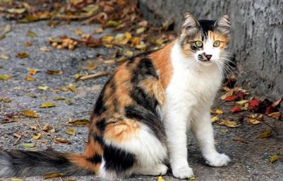 Keywords: cat colorful street sitting looking color domestic mammal feline
