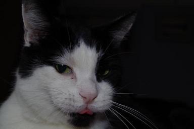 Keywords: cat content tongue cute feline domestic animal pet fur mammal happy head fluffy