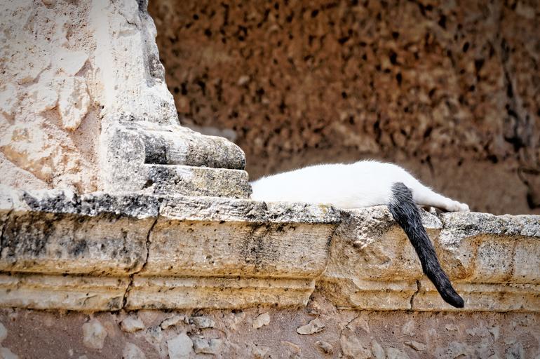 Keywords: cat crete monastery sleep break lazy slow
