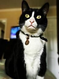 Keywords: cat domestic black friendly eyes funny cute pet calm adorable portrait feline posing whisker fauna