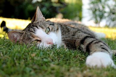 Keywords: cat domestic cat black and white nose cat's eyes animals nature sleep rest mieze adidas animal cat face head grass concerns summer lazy tired cute