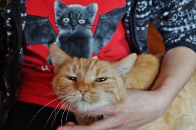 Keywords: cat drbe caressing purr redheaded cobblestone