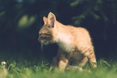 Keywords: cat eye injury one eye village illness vintage wooden outdoor animal pet cute young little unhappy small family domestic red fur portrait nature garden poor
