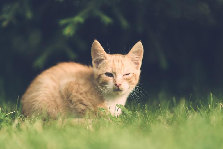 Keywords: cat eye injury one eye village illness vintage wooden outdoor animal pet cute young little unhappy small family domestic red fur portrait nature garden poor
