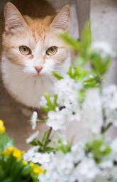 Keywords: cat favorite spring cherry blossoms white petals nature flowers house animal