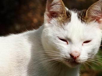 Keywords: cat feline animal kitten pet feline stopped cat face cat's eyes feline look lonely tuned