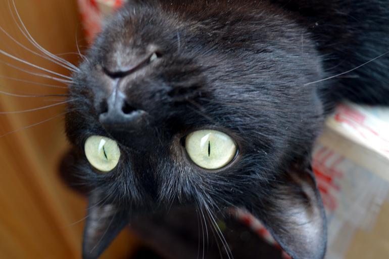 Keywords: cat foolish delighting black cat curiosity surprise interested view eyes mustache housecat pet pets man's best friend closeup animals cat's eye cat eyes cats
