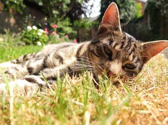 Keywords: cat garden out freewheel lying mackerel