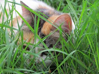 Keywords: cat garden tortoiseshell domestic feline outdoor