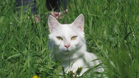 Keywords: cat gaze cat's eyes animals white green grass