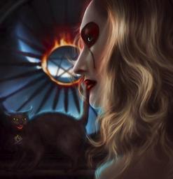 Keywords: cat halloween window moon girl model portrait view mejk eyes lips person