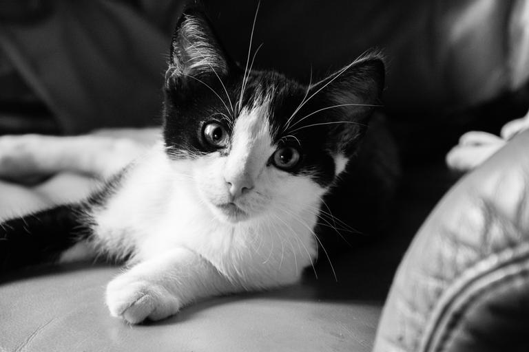 Keywords: cat kitten animal pet a young kitten domestic cat cat's eyes kitty look animals sweet black and white white fur black and white picture fluffy cat cat staring a normal cat tomcat whiskers fluffy