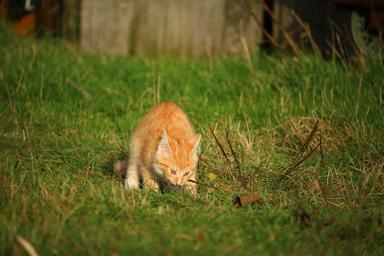 Keywords: cat kitten cat baby meadow autumn grass red mackerel tabby domestic cat red cat
