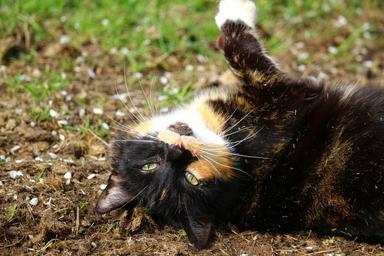 Keywords: cat kitten mieze lucky cat three coloured sun clean paw whiskers domestic cat