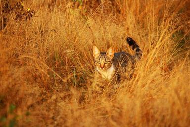 Keywords: cat kitten mieze mackerel tiger cat domestic cat grass autumn young cat