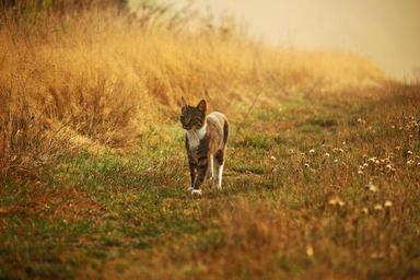 Keywords: cat kitten mieze mackerel tiger cat domestic cat grass autumn young cat