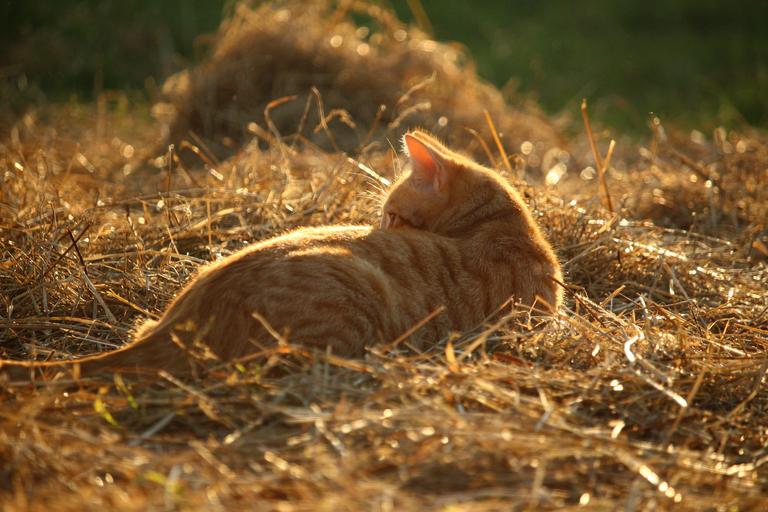 Keywords: cat kitten mieze straw summer red mackerel tabby red cat mackerel evening light