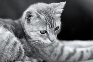 Keywords: cat kitten pet cute eyes feline hair domestic animal grey fur photography black and white