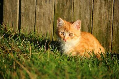 Keywords: cat kitten red mackerel tabby cat baby young cat red cat grass wooden wall