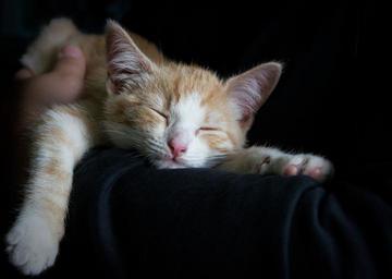 Keywords: cat kitten sleep cute red white black