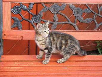 Keywords: cat kitten tabby bench pets cute animals young cat silver tabby