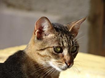 Keywords: cat mackerel sunlight relaxed tiger cat nature pet mieze cat's eyes animal animal portrait