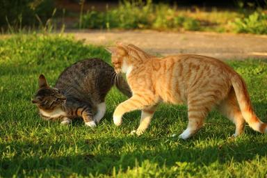 Keywords: cat mieze kitten mackerel red cat domestic cat summer evening light
