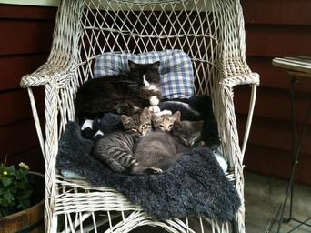 Keywords: cat mom kittens cats family pets together sleeping