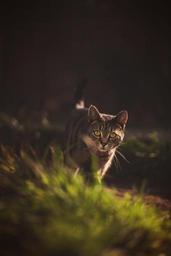 Keywords: cat prowl garden light animal prowling feline hunter eyes predator outdoors domestic pet tabby female