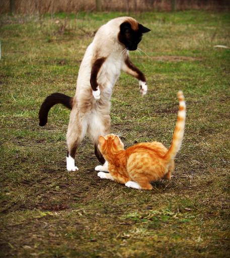 Keywords: cat siamese cat red mackerel tabby red cat fight play siamese kitten young cat mieze