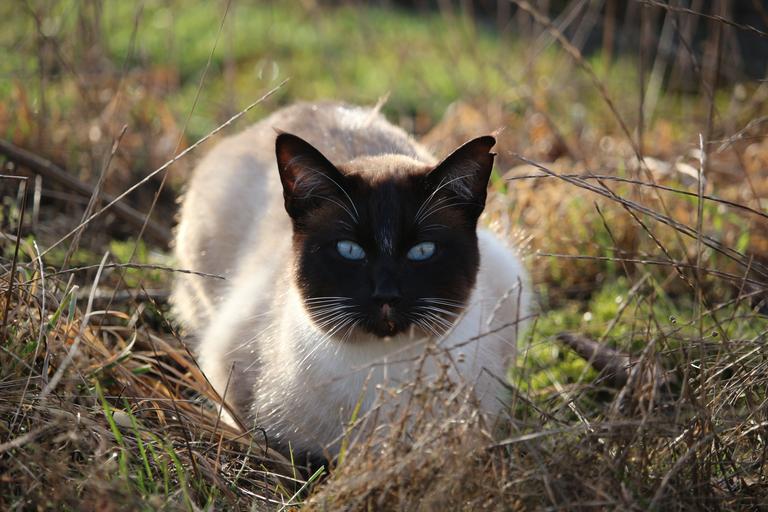 Keywords: cat siamese cat siamese blue eye cat's eyes grass lauer hiding place