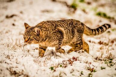 Keywords: cat snow tiger cool cold winter four legs legged animal pet domestic kitty