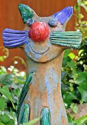 Keywords: cat stone cat colorful flower bed garden nature color bed green blue red decoration decorative