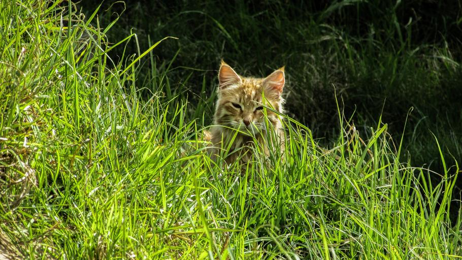 Keywords: cat stray indolence looking behind grasses cute cat nature