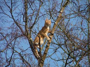 Keywords: cat stuck tree ginger white tabby domestic animal pet portrait cute feline kitty kitten orange young mammal fur furry looking breed hair adorable curious paw whisker baby small playful camera curiosity