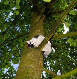 Keywords: cat tree climb young cat pet nature cat in the tree domestic cat in the free curious playful animal animal world black and white fur adidas