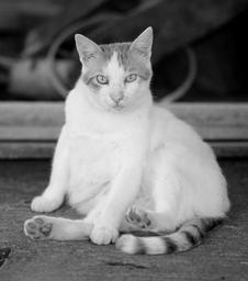 Keywords: cat white lazy residence