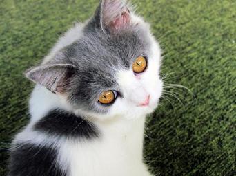 Keywords: cat yellow eyes animal grey white feline