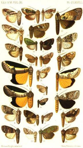| Keywords: CATALOGUE-BM-PLATE CLXXXIII.jpg en PLATE CLXXXIII 1 Pucialia argentea f Vol XI p 335 Honduras 2 P mariva m p 336 Peru 3 P chlorographa m p 337 Fr Guiana 4 Eligma duplicata f p 327 Uganda 5 E hypsoides f p 328 S Nigeria 6 Pucialia poliopepla f p 337 Brazil 7 P rectilinea m p 338 Fr Guiana 8 Gadirtha costipallens f p 344 New Guinea 9 G poliochroa f p 350 Queensland 10 Casandria olivaris f p 354 Mexico 11 C metaphaea m p 358 Panama 12 C chirica f p 358 Costa Rica 13 C steniptera m p 359 Fr Guiana 14 C araea f p 359 Costa Rica 15 Gadirtha hades f p 348 Queensland 16 G aroa f p 347 New Guinea 17 Casandria purpurascens f p 355 Costa Rica 18 C arcuata m p 357 Costa Rica 19 C haematopis f p 359 Argentina 20 C filifera m p 360 Bahamas H8982 Collomena filifera Wlk 1857 21 Gadirtha elongata f p 349 Assam 22 Pucialia similis m p 339 Venezuela 23 Gadirtha pulchra f p 341 Queensland 24 G glaucograpta m p 342 Gold Coast 25 Eligma malagassica f p 329 Madagascar 26 E orthoxantha f p 331 Queensland 27 Gadirtha exacta m p 343 New Guinea 28 G turneri f p 344 New Guinea CATALOGUE OF THE NOCTUIDAE IN THE COLLECTION OF THE BRITISH MUSEUM Sir GEORGE F HAMPSON Bart 1903-1913 PD-old Catalogue of Lepidoptera Phalaenae in the British Museum Vol 11 Butterflies of Venezuela in plates |