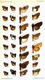 | Keywords: CATALOGUE-BM-PLATE CXLVII.jpg en PLATE CXLVII 1 Annaphila arvalis m Vol IX p 473 Oregon H9854 Hy Edw 1875 2 A danistica m p 474 Oregon H9850 Grt 1873 3 A mera m p 474 California H9852 Harv 1875 4 A domina f p 475 California H9852 A mera Harv 1875 5 A pustulata f p 476 Arizona H9853 Hy Edw 1881 6 A divinula f p 476 California H9862 Grt 1878 7 A germana m p 477 California H9868 A decia Grt 1875 8 A decia m p 478 California H9868 Grt 1875 9 A depicta f p 478 California H9866 Grt 1873 10 A lithosina m p 479 California H9863 Hy Edw 1875 11 A miona f p 480 California H9864 Sm 1908 12 A casta f p 482 California H9865 Hy Edw 1890 13 A superba f p 482 California H9870 Hy Edw 1875 14 Janthinea divalis f p 483 Kurdistan 15 Panemeria jocosa m p 487 Sicily 16 Pseudacontia aterrima f p 491 California 17 Parastichtis standfussi m p 497 Sicily 18 P ribbei m p 497 Spain 19 P polyglypha m p 498 Palestine 20 P ona m p 499 Arizona 21 Trachea susquesa m p 500 California 22 T umbrifacta f p 501 Utah 23 T ferida f p 501 Newfoundland 24 Euplexia callichroa f p 502 Victoria 25 E melanops m p 503 S Australia 26 Perigea albistriata f p 505 Peru 27 Centropodia vhitei f p 507 Canaries 28 Pseudohadena presbytis m p 509 E Turkestan 29 Luperina acharis m p 510 Mongolia 30 Chytonix haba f p 516 Ecuador 31 Cerma marina m p 518 Arizona 32 Acronycta phaedra f p 519 E Siberia CATALOGUE OF THE NOCTUIDAE IN THE COLLECTION OF THE BRITISH MUSEUM Sir GEORGE F HAMPSON Bart 1903-1913 PD-old Catalogue of Lepidoptera Phalaenae in the British Museum Vol 4 |
