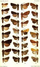 | Keywords: CATALOGUE-BM-PLATE LXXII.jpg en PLATE LXXII 1 Agrotis cinctithorax m Vol IV p 454 Cape Colony 2 A catenifera f p 455 Congo 3 A inopinata m p 456 Colorado H10928 Graphiphora haruspica Grt 1875 b inopinatus Sm 1898 4 A sierrae m p 456 Colorado H10928 Graphiphora haruspica Grt 1875 a sierrae Harv 1876 5 A squalida m p 457 W Turkestan 6 A unimacula m p 458 New York H10928 Graphiphora haruspica Grt 1875 7 A jalapa m p 459 Mexico 8 A havilae m p 460 Nevada H10927 Spaelotis havilae Grt 1880 9 A lucens f p 460 Japan 10 A deplorata m p 461 W Turkestan 11 A clemens f p 462 California H10925 Rhyacia quadrangula Zett 1839 a clemens Sm 1890 12 Eucoptocnemis tripars m p 465 Indiana H10695 Wlk 1856 13 Episilia perdita m p 469 Tierra del Fuego 14 E dissociata m p 471 Patagonia 15 E coppingeri m p 472 Patagonia 16 E hilaris m p 472 Texas H10956 Xestia bollii Grt 1881 17 E fungorum m p 473 New York H10998 Choephora haruspica G R 1868 18 E madida f p 473 Mexico 19 E molepa m p 473 S Brazil 20 E straminea m p 474 W China 21 E vittata m p 476 Tibet 22 E postfusca m p 477 Ceylon 23 E haesitans m p 478 Rocky Mts H10668 Agrotis haestitans Wlk 1857 24 E manifesta f p 480 New Jersey H10666 Agrotis manifesta Morr 1875 25 E olivascens f p 481 Sikhim 26 E coturnicula m p 482 Amurland 27 E littoralis m p 483 Colorado H10992 Paradiarsia littoralis Pack 1867 28 E monochromata f p 483 New Hampshire H10993 Hemipachnobia subporphyrea Wlk 1858 a monochromatea Morr 1874 29 E xanthostola m p 483 Falkland Is 30 E colima m p 484 Mexico 31 E serraticornis m p 485 Castille 32 E senescens m p 485 W Turkestan CATALOGUE OF THE NOCTUIDAE IN THE COLLECTION OF THE BRITISH MUSEUM Sir GEORGE F HAMPSON Bart 1903-1913 PD-old <gallery> File CLBM_04_Pl72 png Larger version </gallery> Catalogue of Lepidoptera Phalaenae in the British Museum Vol 4 |