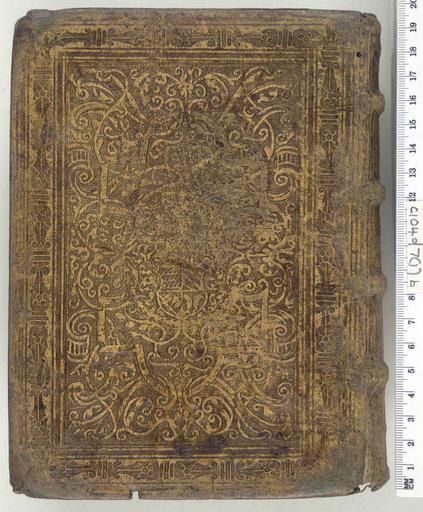 | Keywords: Catechismus oder Kirchenlehre - Lower cover (c104d7).jpg Style Armorial; Caption Lower cover; Colour White / cream; Edge Unspecified exhibition history Decorative Technique Panel stamp in blind Tooled in silver; Cover Material Pigskin alum tawed Traces of 2 pairs of ties Ms notes on the first pages Herzog on arms Panel stamp in blind or silver Macchi states; bound during the last quarter of the 16th century in Tübingen by a Samuel Streler successor The panel stamp appears in Tübingen in several variants Ilse Schunke considers a variant the work of Samuel Streler whose name was recorded at Tübingen university in 1550 and who worked for Duke Christoph His activity is certified until 1577 but his workshop was active until 1618 Similar panel-stamp bindings are kept in 1 Berlin National Library A Schmidt Bucheinbände aus dem 14 -19 Jahrhundert pl XLVIII p 23 fig 74 on Handlungen Des Allgemeinen Concilumbs Wolches gehalten worden vber dem Span Tübingen Georg Gruppenbach 1582; Idem p 24 pl XLIX fig 76 on Hieronymi Cardani Mediolanensis medici de vtilitate ex adversis capienda libri III Basileae per Henricvm Petri 1561; 2 München National Library on Michael Maestlin Ephemerides novae Tübingen 1580 shelfmark 4° Eph astr 67 F Geldner Bucheinbände aus elf Jahrhunderten pl LXVI fig 92 ; 3 Rome Biblioteca Angelica on Martin Crusius Civitas coelestis seu Catecheticae conciones Tubingae apud Georgium Gruppenbachium 1587 shelfmark o 4 33 Ludwig III coat-of-arm Biblioteca Angelica Roma Legature di pregio p 48 n 22 ; 4 Schweinfurt Municipal Library M Hahn Schweinfurts Drucker Buchbinder und Buchhändler col 643 pl 22 For further bibliography see A von Arnim Einbandkunst n 67 on Abraham Buchholzer Chronologia Görlitz A Fritsch 1584; Collegio Borromeo Pavia Legature rinascimentali e barocche p XXXII n 58 on Cicero M Tullius Epistolarum ad familiares libri XVI apud Petrum Santeandrum 1580; F Geldner Pfalzgrav Philipp Ludwig von Neuburg 1574-1614 pl 8; E Ph Goldschmidt Gothic and Renaissance bookbindings n 254 on Valerius Maximus Antwerp Plantin 1574; E Kyriss Katalog historischer Einbände n 23 with reproduction; K Haebler Rollen- und Plattenstempel II p 90 panel-stamps III and V; I Schunke Studien zum Bilderschmuck p 72 Samuel Streler Another version produced in Lauingen by Hans Wagner in 1582 is recorded Antiquariat Konrad Meuschel Bad Honnef am Rhein Seltene Bücher p 16-17 n 20 on Cicero De officis De senectute De amicitia Paradoxa Somniun Scipionis Basel ex officina Herwagiana 1584; L Gruel Manuel historique et bibliographique 1905 p 172-173; K Haebler Rollen- und Plattenstempel H W Hans Wagner Lauingen p 482; A Schmidt Bucheinbände aus dem 14 -19 Jahrhundert p 24 pl XLIX fig 77 on Educationis puerilis lingvae Latinae pars prima Argentorati Josias Rihelius 1583 p 24 pl XLIX fig 78 on Strigilis grammatica Argentorati 1585 M von Arnim Einbände n 46 on Martin Luther Ein einfeltige weise zu beten für einen guten Freund Leipzig Valentin Baptist 1551 informs about a similar panel-stamp to be seen on a cover binding bound in Saxony object history Text 1592; Frankfurt; Unspecified object type Cc-zero place of creation Binding Germany place of discovery Unspecified British Library image http //www bl uk/catalogues/bookbindings/LargeImage aspx RecordId 020-000004538 ImageId ImageId 41874 Copyright BL Catechismus oder Kirchenlehre Uploaded with GWToolset Catechismus oder Kirchenlehre - Lower cover c104d7 http //www webarchive org uk/bldatasets/bindings/6447_4 jpg Bookbinding 16th-century bookbinding British Library Bookbindings |
